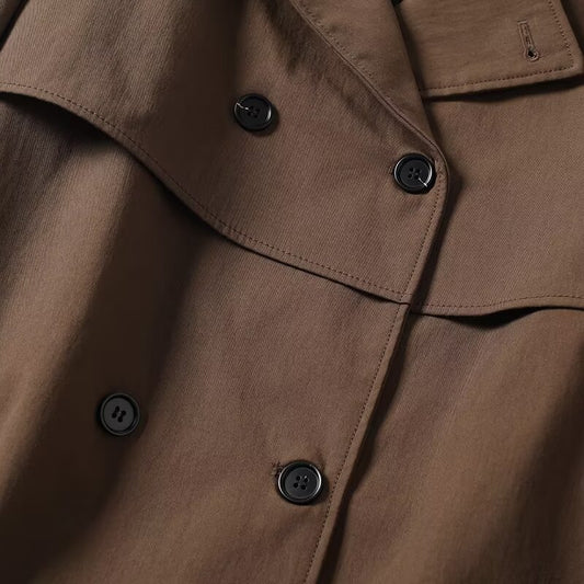 Collar long sleeved large pocket trench coat contrasting color coat for women