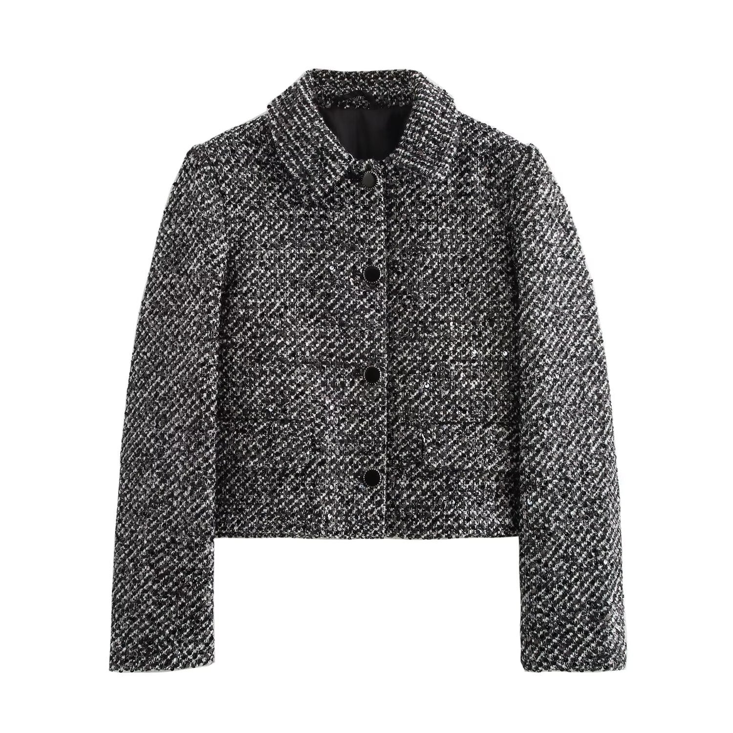 Women's collar long sleeved breasted linen gray textured jacket